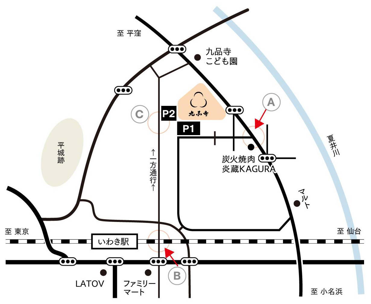 いわき駅からも近く、お車でも公共交通機関でもお越しいただきやすい立地にございます。
